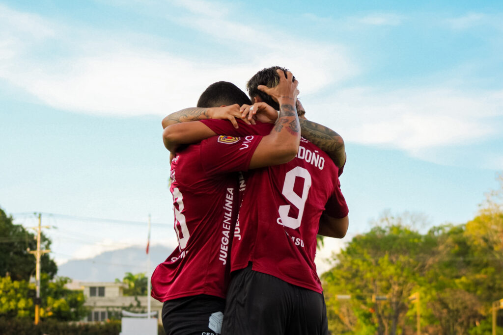 Los granates no se dejaron afectar por la pronta expulsión, en el minuto 16 un desborde del colombiano Cristian Cañozales y un centro colocado con la mano a su compatriota Flabian Londoño pondría por delante a los locales 1-0.