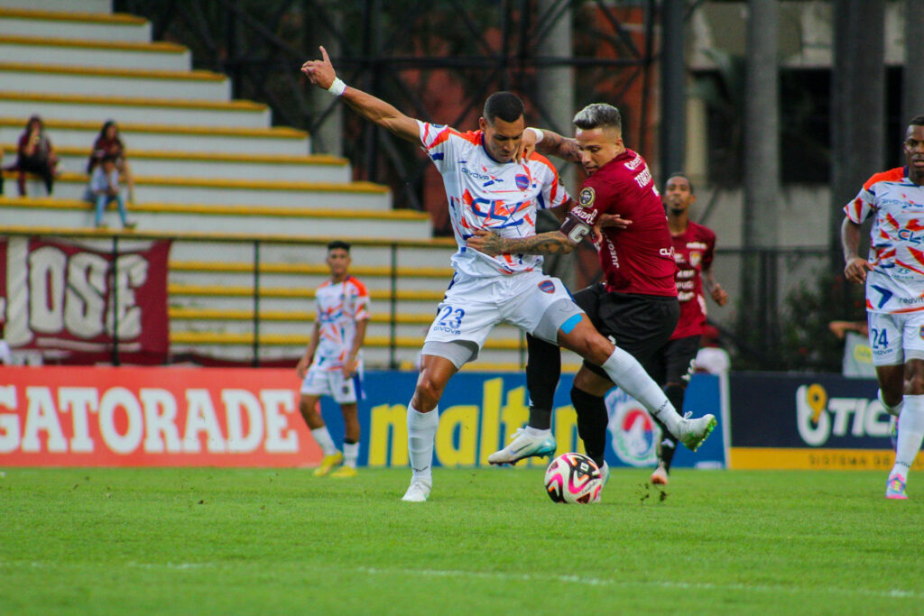 El primer tiempo se tiñó de granate, los locales se hicieron dueños después la pelota y acecharon el área visitante con llegadas por las bandas con la dupla colombiana de carrileros de Cristian Cañozales y Joshua Berrios.