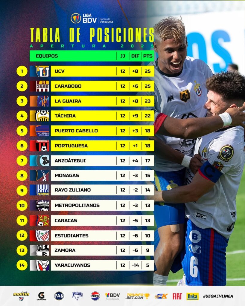 A falta de la última fecha del Torneo Apertura 2025, el Caracas FC se encuentra fuera de los puestos de clasificación para la Fase Final. Luego de caer goleados en dos jornadas consecutivas, los «Rojos del Ávila» están en el puesto 11 de la tabla.