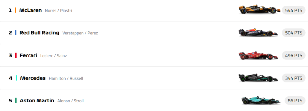 Con solo cinco carreras restantes, Ferrari se sitúa en la tercera posición del campeonato de constructores, acumulando 496 puntos. Este éxito en Austin acercó a Ferrari quien disputada una batalla por la segunda posición liderada por Red Bull con solamente 8 puntos de diferencia. El ritmo de mejora del equipo italiano en la segunda mitad del campeonato les ha permitido mantenerse en la lucha.