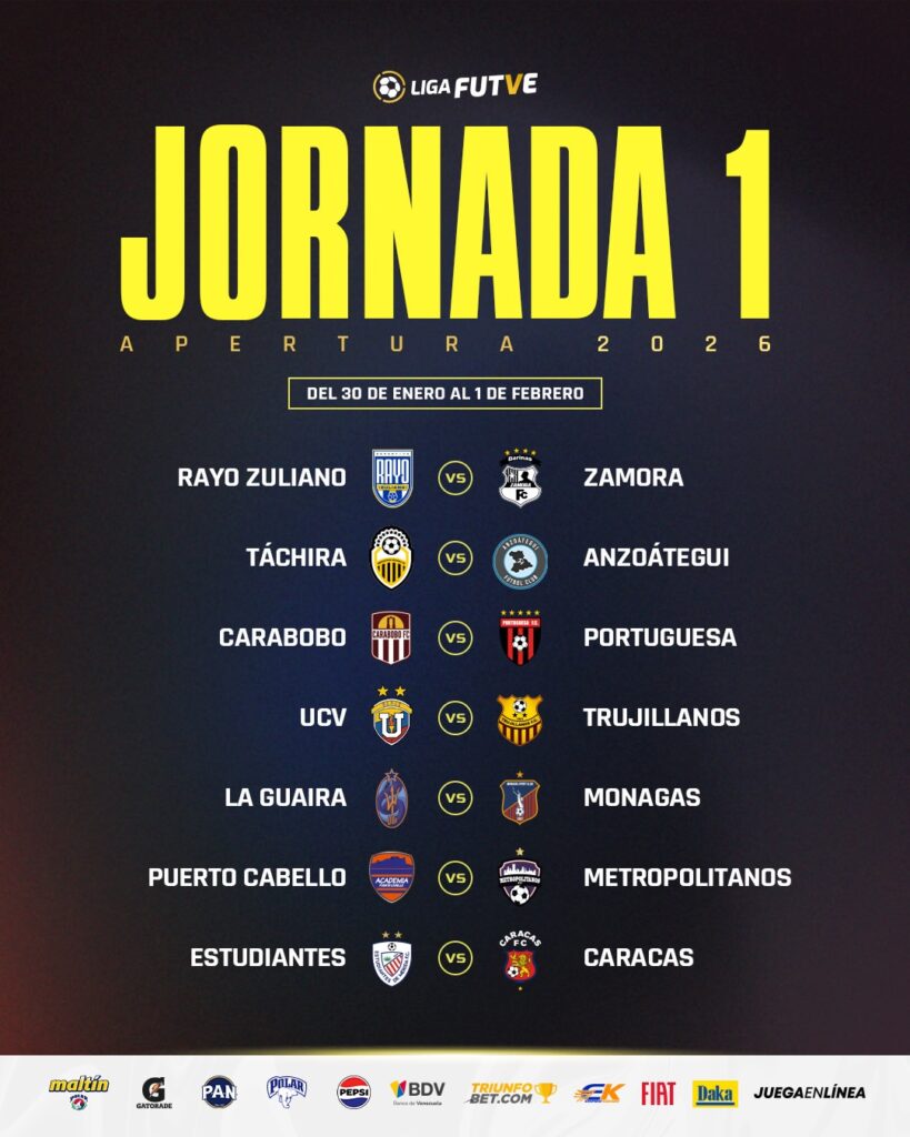 De acuerdo a la publicación, la primera jornada del Torneo Apertura arrancará el viernes 30 de enero del 2026 con la participación de 14 clubes, entre ellos el recién ascendido Trujillanos FC.