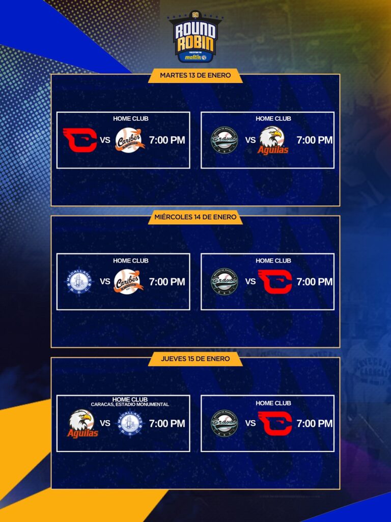 Magallanes vuelve a la acción luego de su día de descanso para enfrentar a Caribes de Anzoátegui que llega con racha positiva esta semana. Mientras que, Bravos de Margarita visitará a Cardenales de Lara.