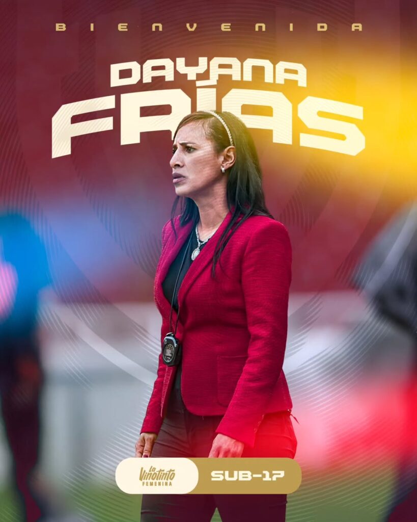 Dayana Frías, quien despertó la atención recientemente en el Valledupar FC de la máxima categoría del fútbol colombiano femenino, asume el reto de la Sub-17 de Venezuela y llega al cargo contando con un gran recorrido por la Liga FUTVE FEM, donde ha trabajado con clubes como Carabobo FC y Deportivo Lara, conjunto con el cuál fue campeona en el año 2022.